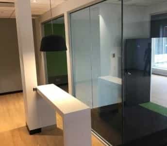 • Le nouvel édifice à bureaux au centre-ville, doté de séparations et portes intérieures modernes.